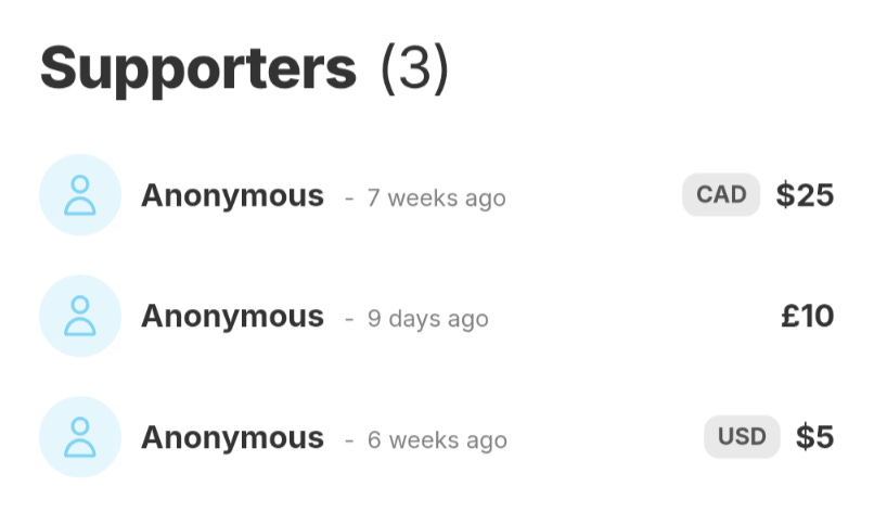 In all that time, he has received twenty dollars.
