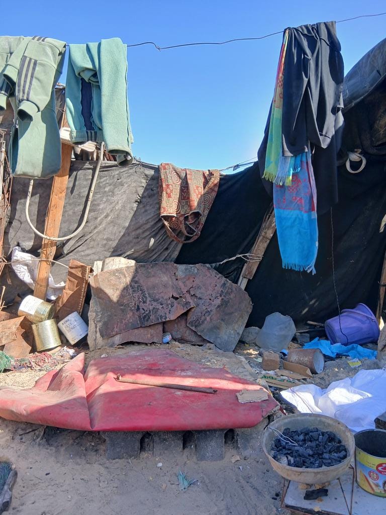 Hayam lives now in a tent. The word tent feels too small for what it has to hold. There is no electricity. No clean water. No gas. No safety. Her husband carries shrapnel in his chest from Israel’s airstrikes. The fragments are still inside him. He cannot work. Their three‑year‑old daughter cries from hunger. Their baby needs milk. Every day is a new version of the same struggle.