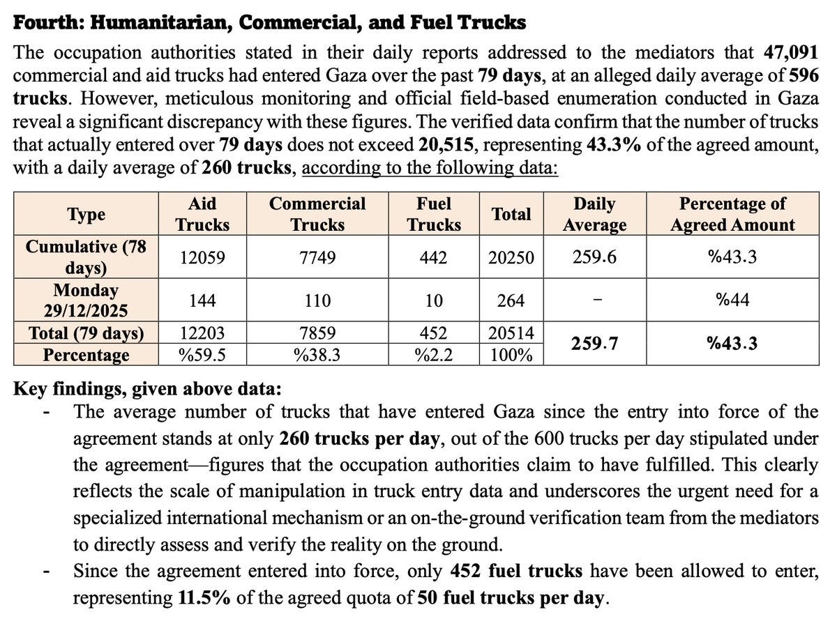 ▪️ The report states Israel “has not adhered to the ceasefire for a single day”