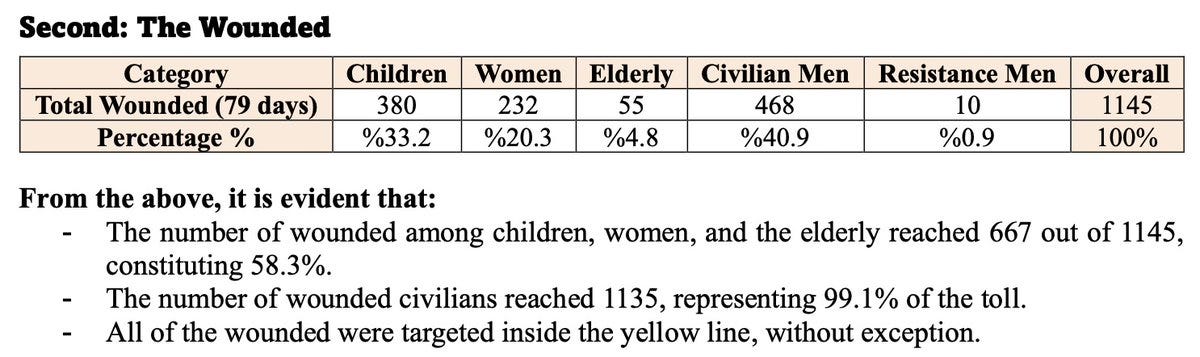 ▪️ Children, women, and elderly make up 58.3% of the wounded