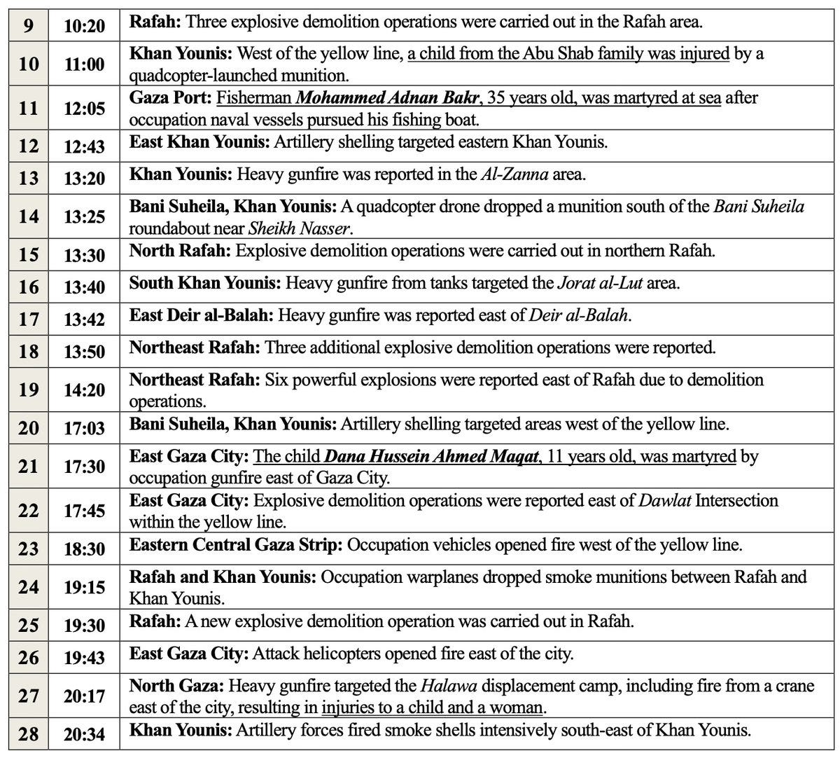 ▪️ Includes airstrikes, shelling, live fire, home demolitions, vehicle incursions, and detentions
