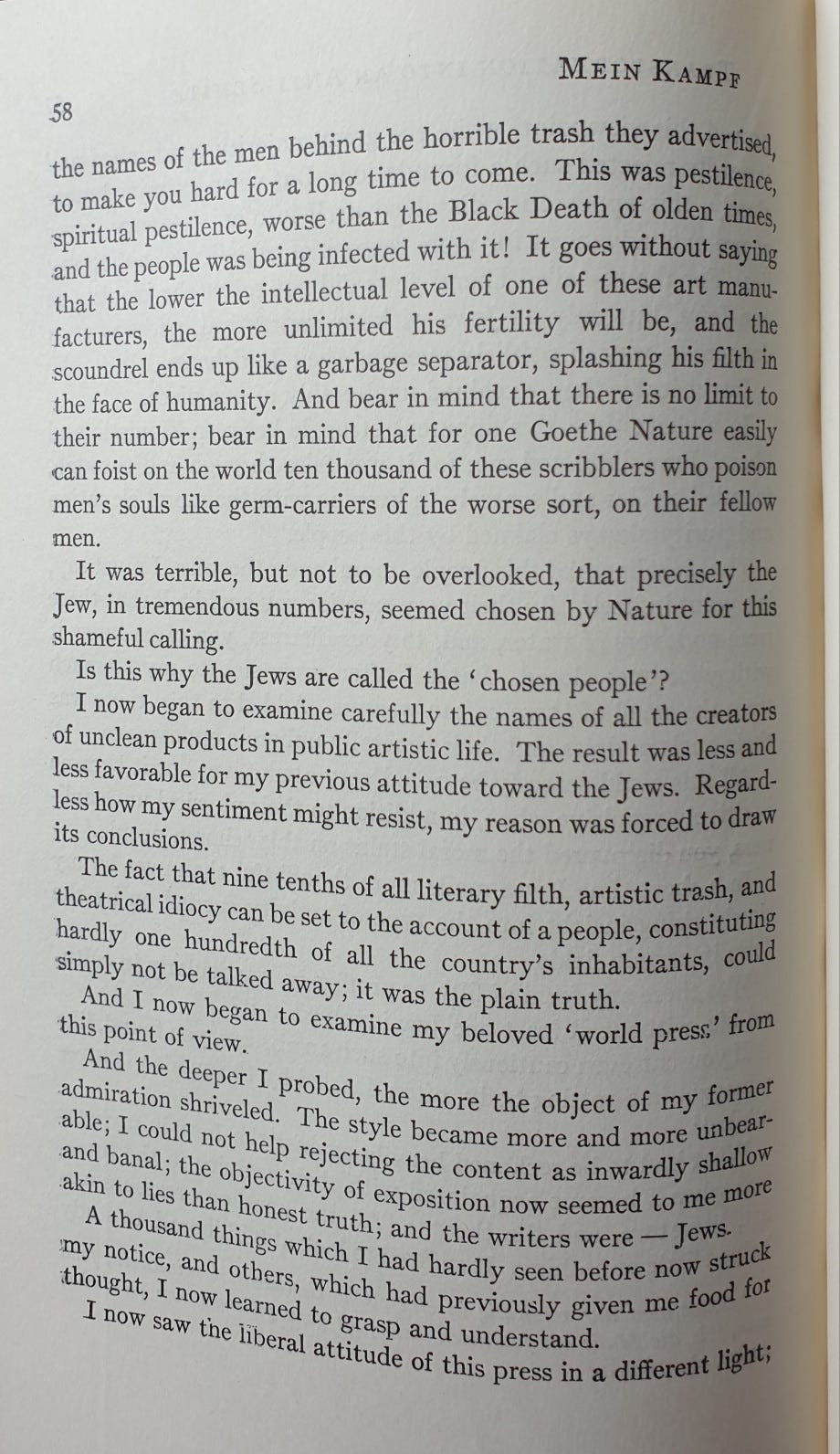 It is imperative that we read Hitler’s words, holding our nose knowing how vile, essentialist and dehumanizingly genocidal they were.