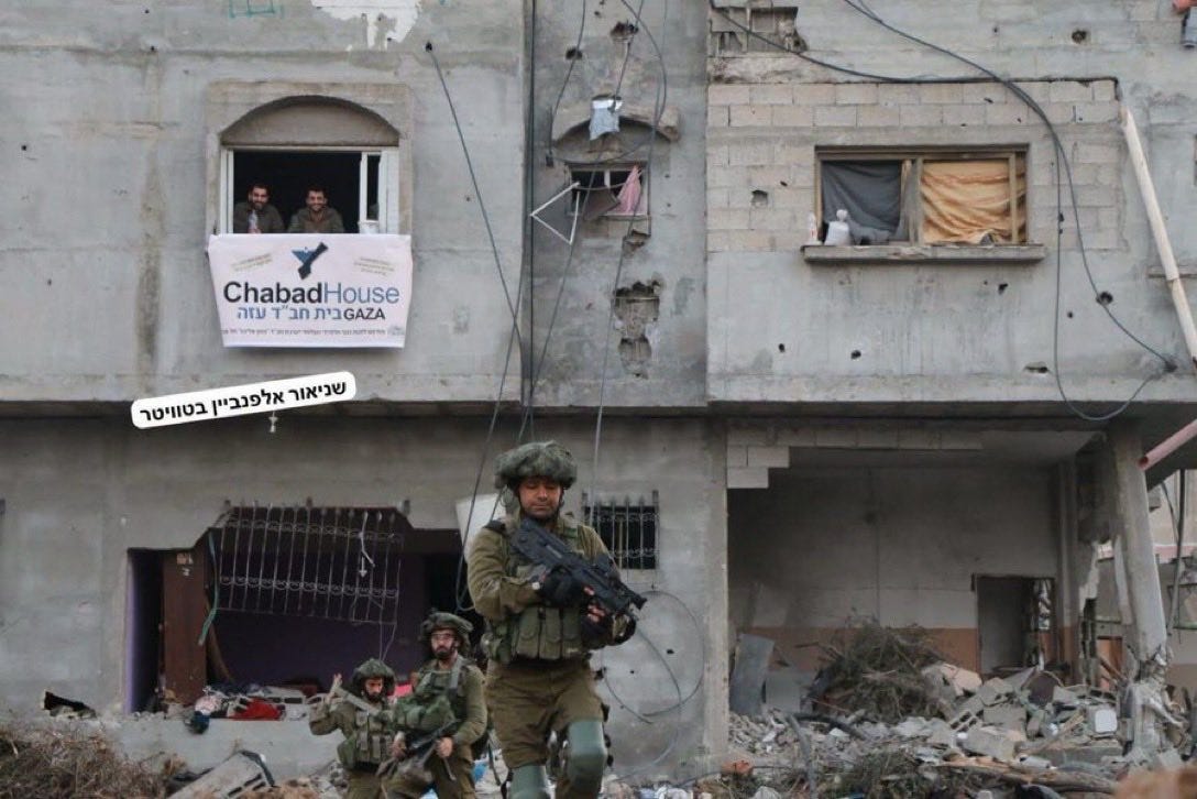 This is the “Chabad” center they ‘opened’ in Beit Hanoun, Gaza. [They occupied a home in Gaza during the genocide to take this picture]