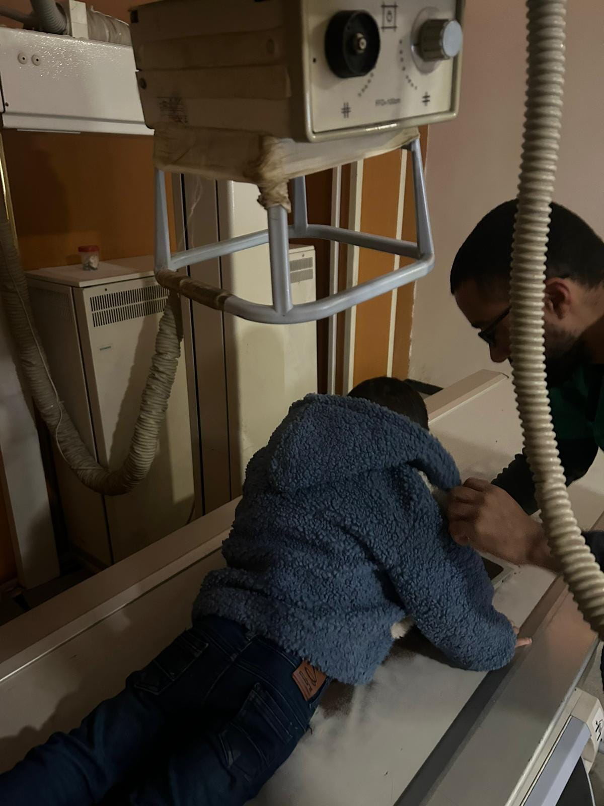 Her four‑year‑old son, Yamen, has a serious leg condition and wears heavy metal braces. She carries him everywhere because they cannot afford a wheelchair. The cost for that wheelchair is $1k, an impossible amount in a place where a bag of flour is $30. Her baby, Sanad, is one year old and needs regular medication. Both children have perforated eardrums from explosions landing too close to them. They are sick often. Food is never guaranteed.